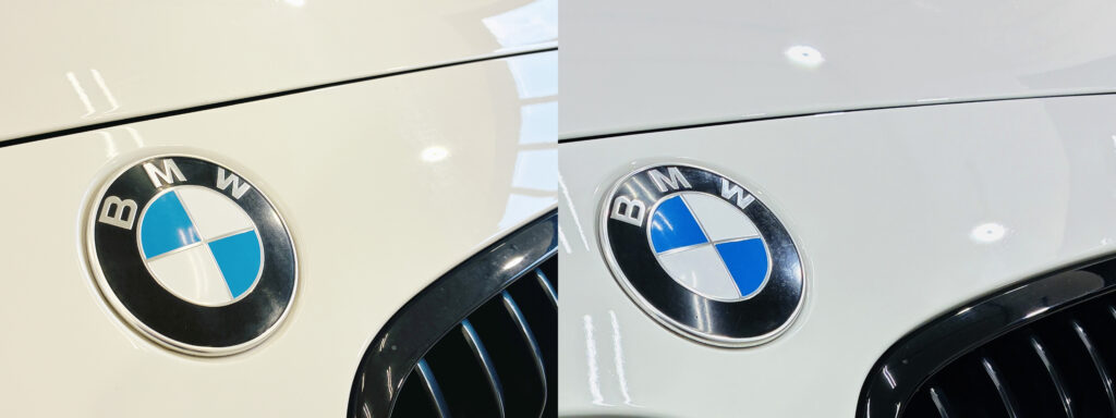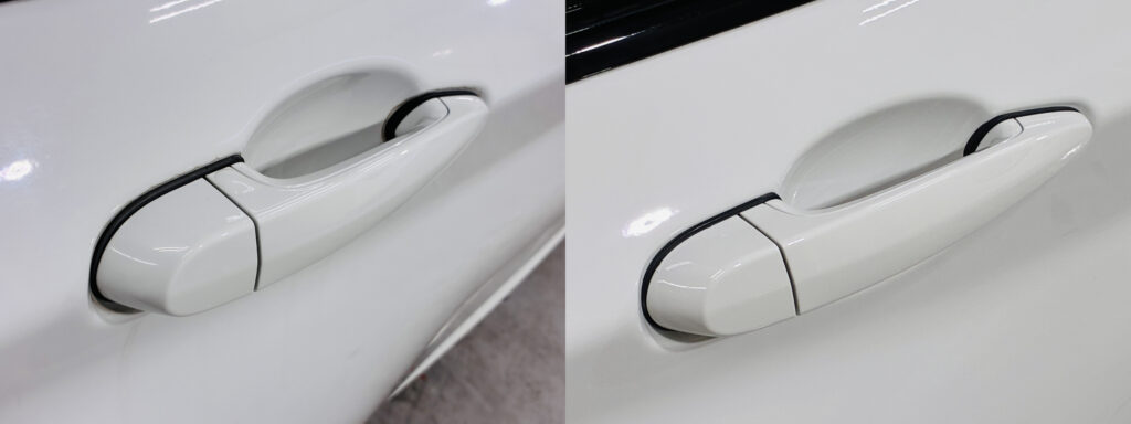 施工後は、白いボディの透明感が大きく向上し、経年車とは思えないほどすっきりとした印象に生まれ変わりました。