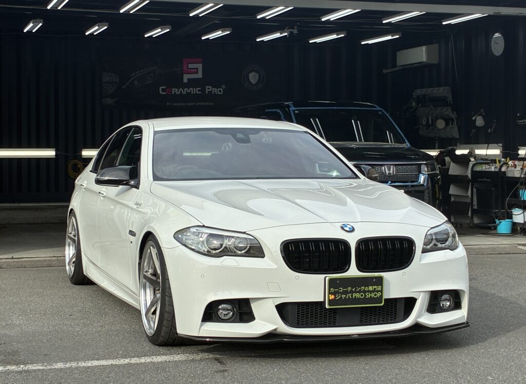 今回ご入庫いただいたのは、BMW 5シリーズ セダン(白)の経年車です。